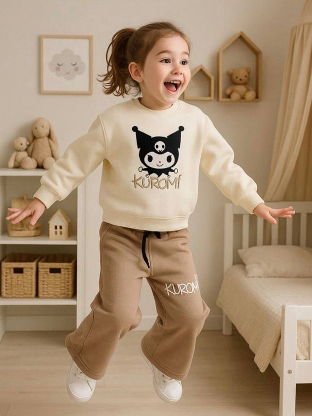 ست تو گرم کُرومی تولید ترکیه هم شلوار و هم بلوز لاینر دار و تو کرک هستن مناسب سایز۴ تا ۱۱ سال در دو رنگ بادمجونی روشن و کرم
