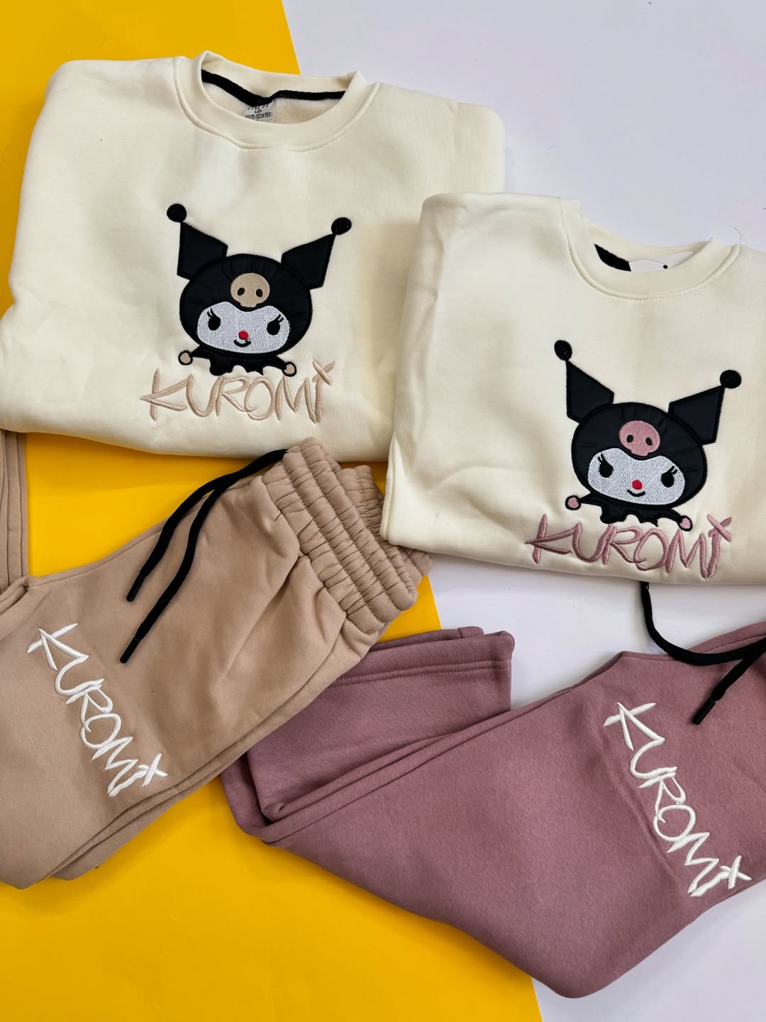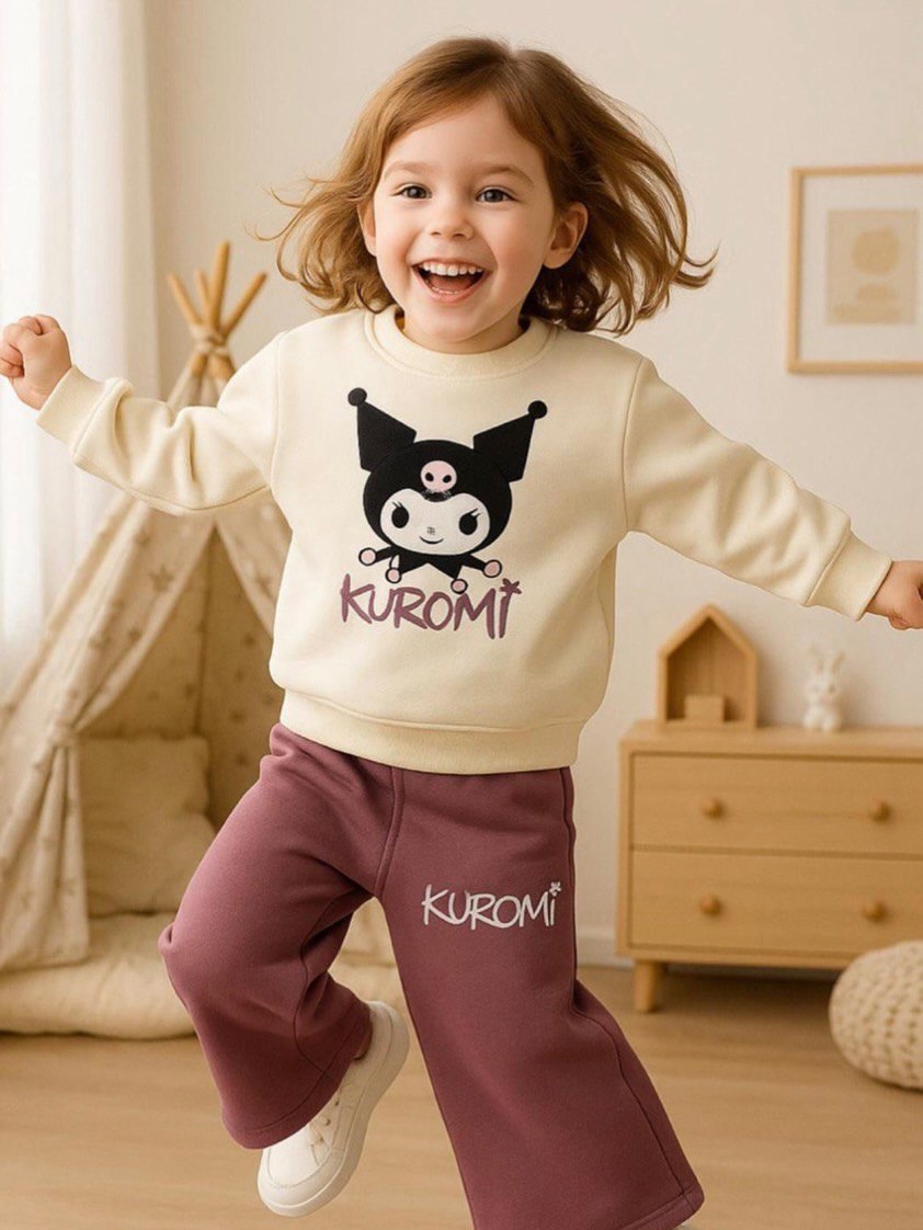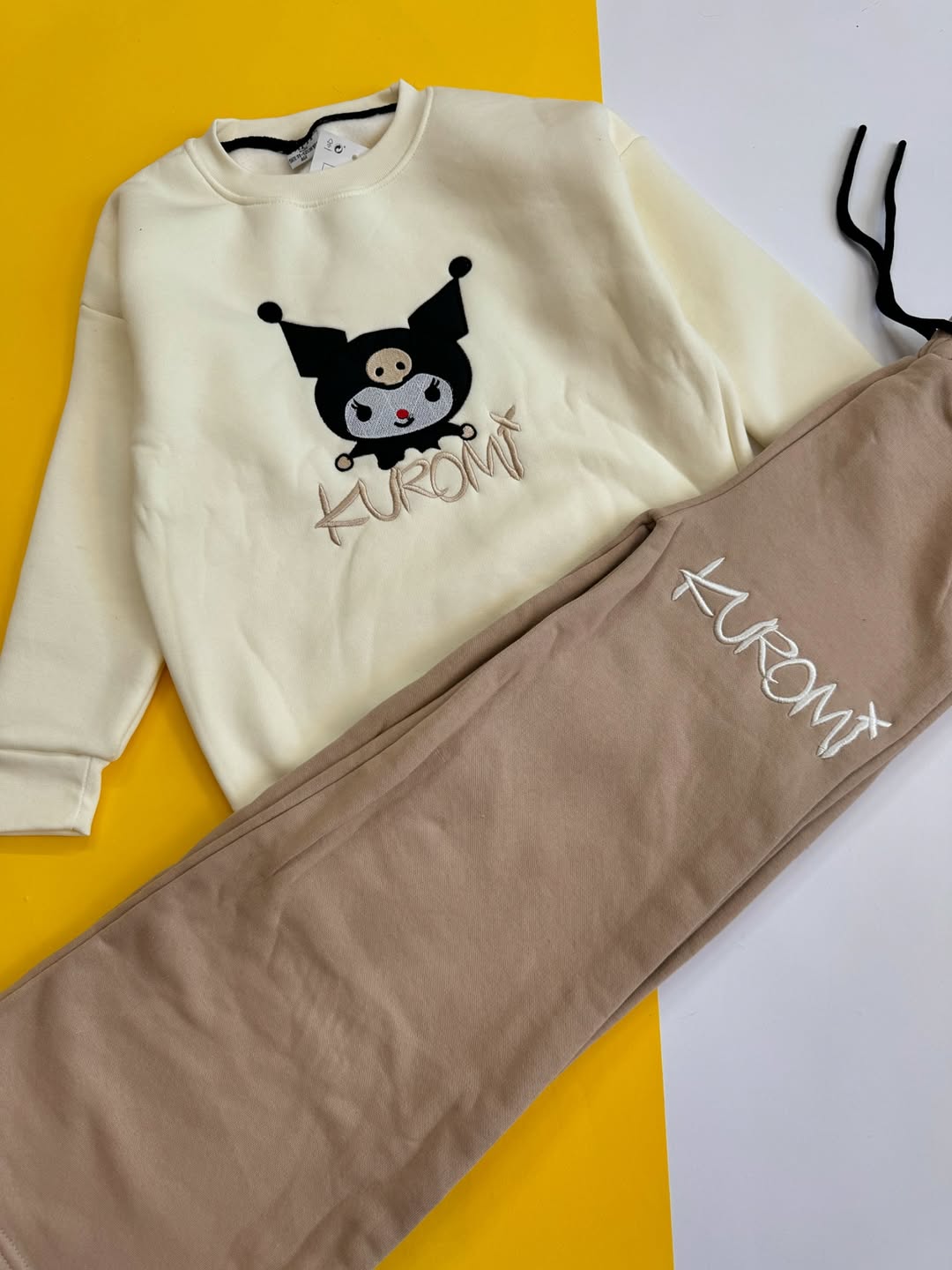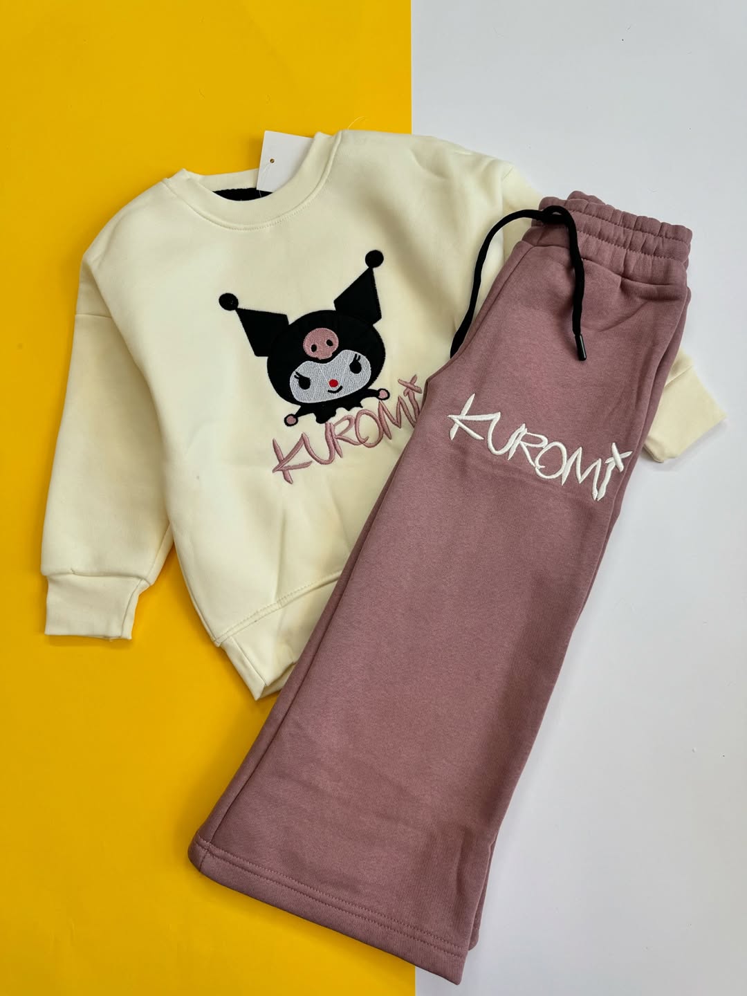 ست تو گرم کُرومی تولید ترکیه هم شلوار و هم بلوز لاینر دار و تو کرک هستن مناسب سایز۴ تا ۱۱ سال در دو رنگ بادمجونی روشن و کرم
